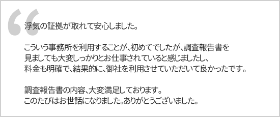 | セールスポイント | 女性相談員が対応、調査後のサポートあり |