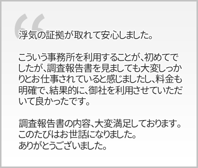 裁判で有効な浮気の証拠を重視。無料のアフターフォローがあります。 |